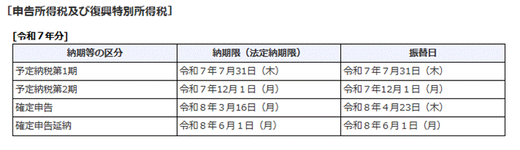 出所:主な国税の納期限(法定納期限)及び振替日(国税庁)