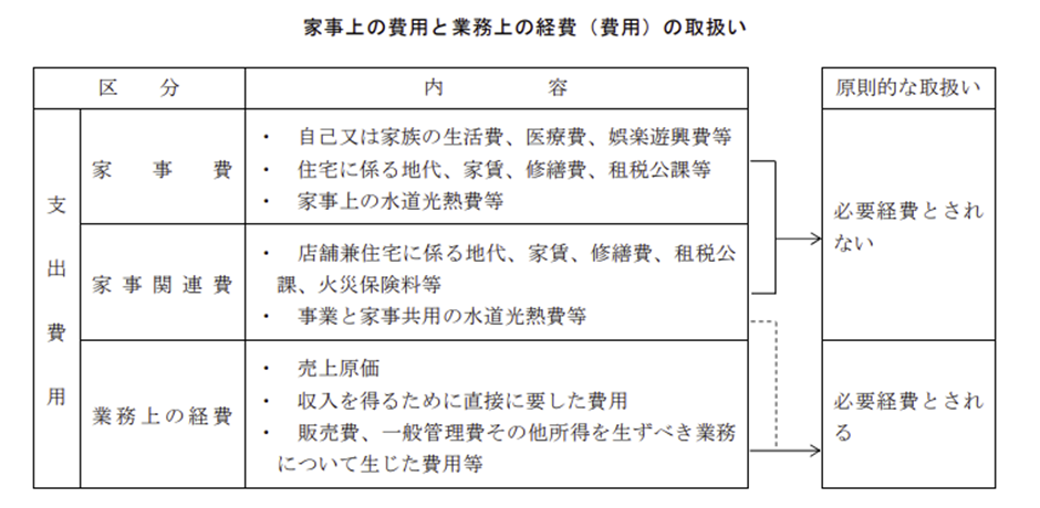 自宅を事務所として利用する場合は、生活費と事業経費が混在していますが、経費として認められるのは、事業に直接要した費用に限られます。