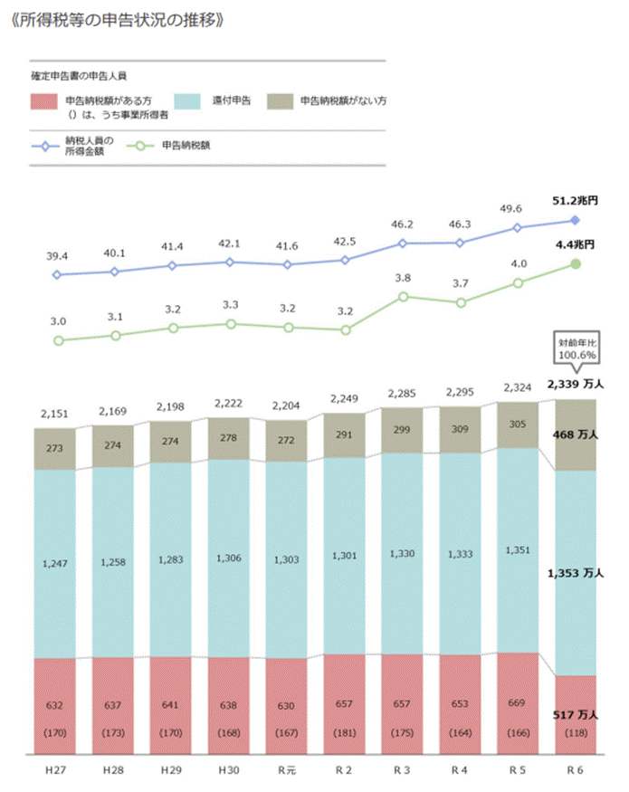 出所:令和6年分の所得税等、消費税及び贈与税の確定申告状況等について(国税庁)