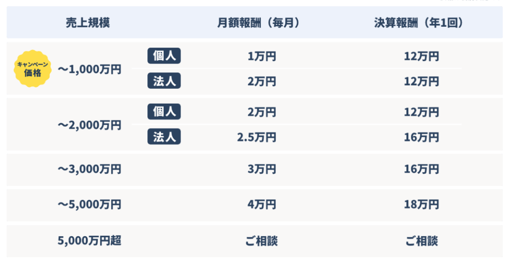 優良な税理士事務所は、自社のサービス内容と価格設定に自信を持っています。そのため、以下のように料金を詳細に公開できます。